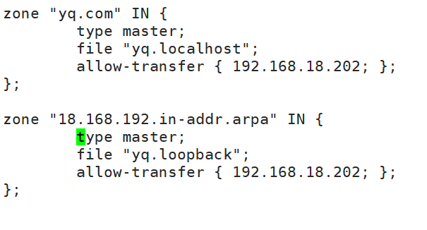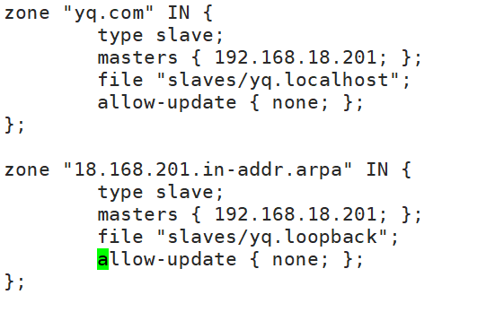 主服务器: allow-update 行替换为 allow-transfer { IP; };