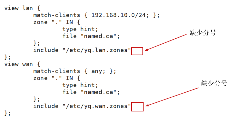 3) 实现DNS分离时,对/etc/named.conf格式要求,
