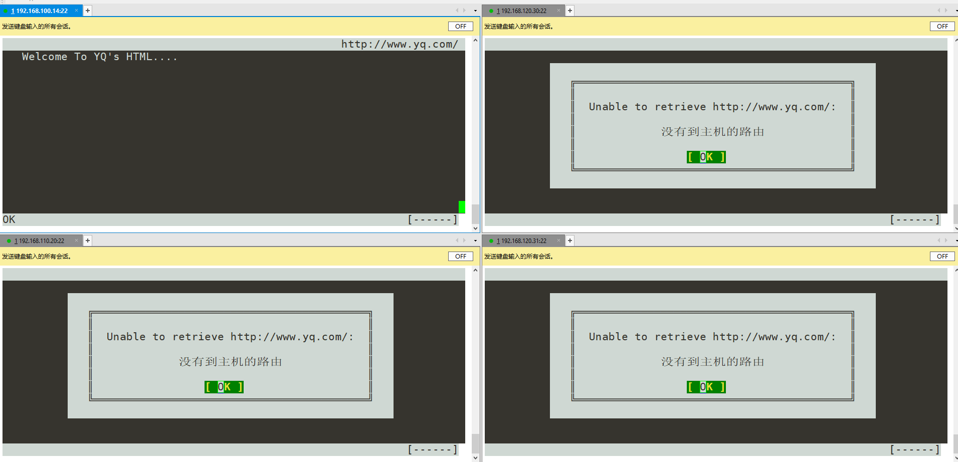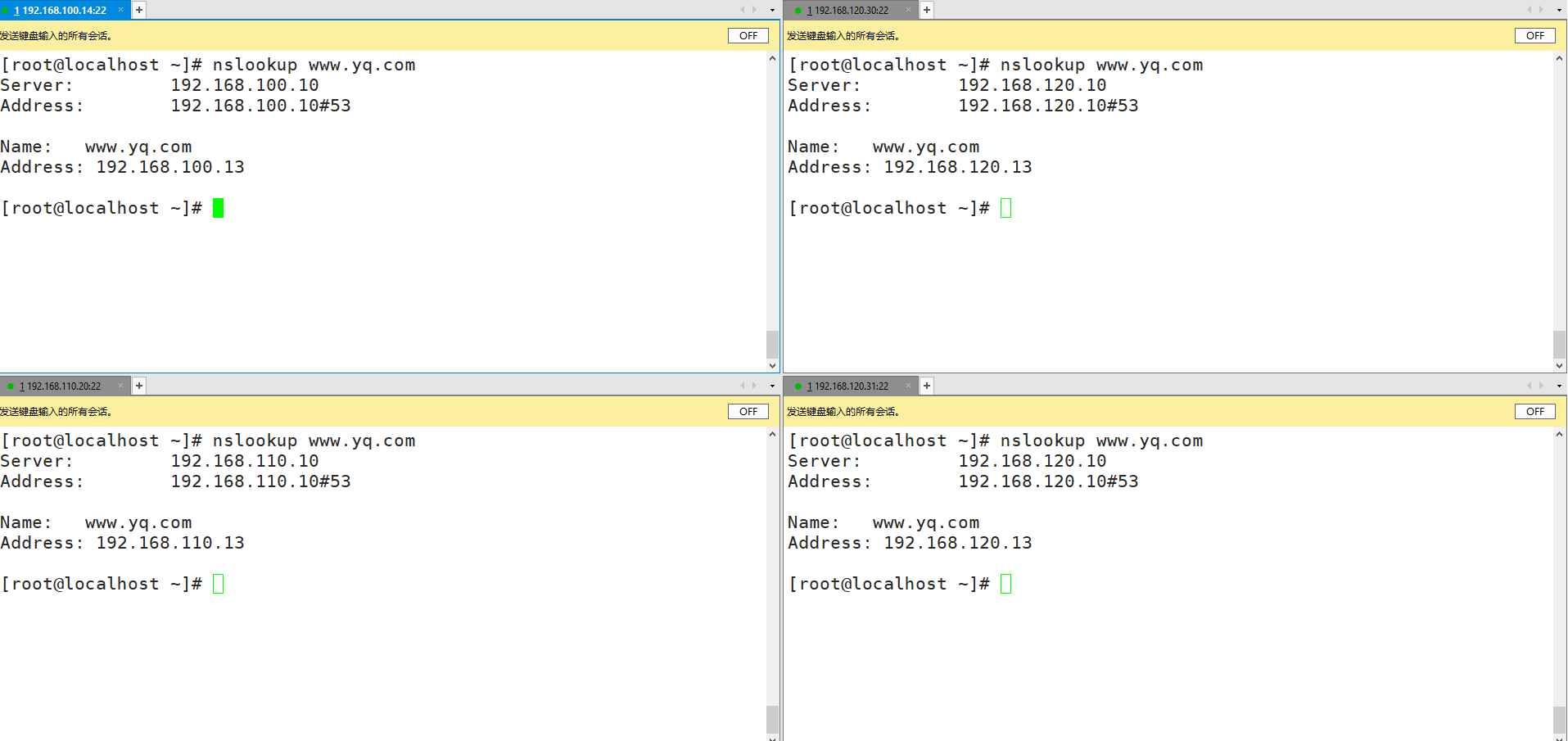 4 DNS分离解析实验,同一域名,在内外网都能解析出不同IP,但是只有其中一个能访问网页