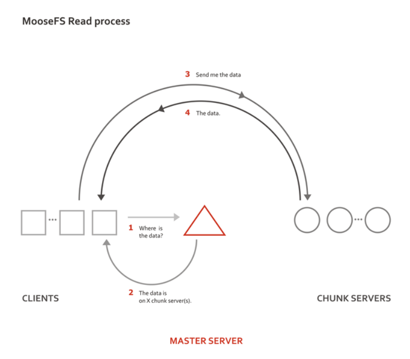 1.client向master请求数据位置,master发送数据所在chunk位置