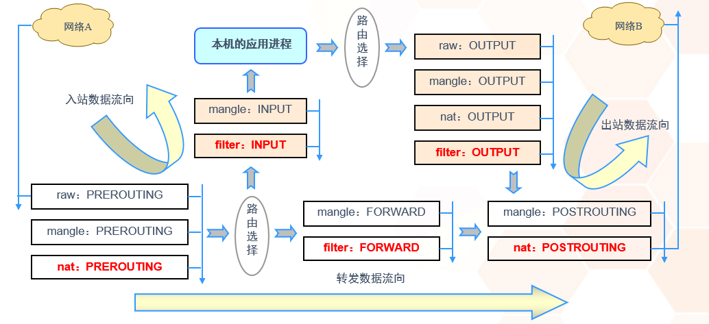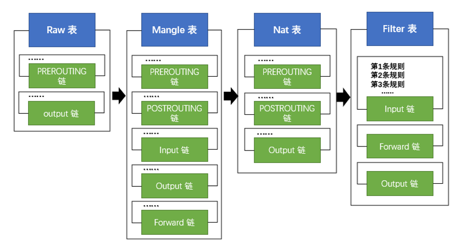 表顺序: rwa > mangle > nat > filter
