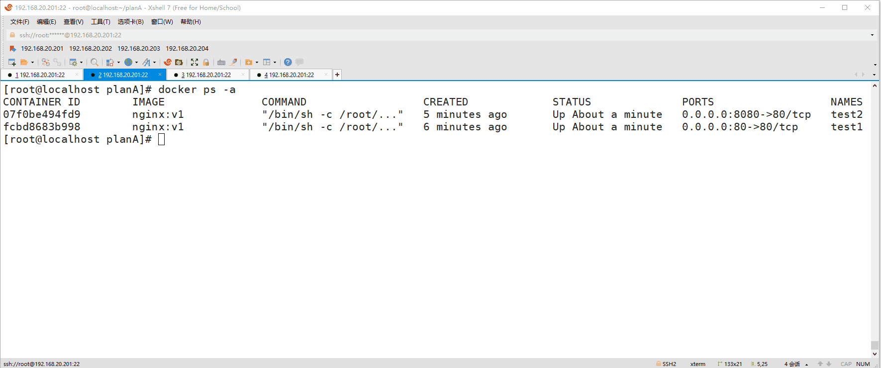 [root@localhost planA]# docker run --name test1 -d -p 80:80 nginx:v1