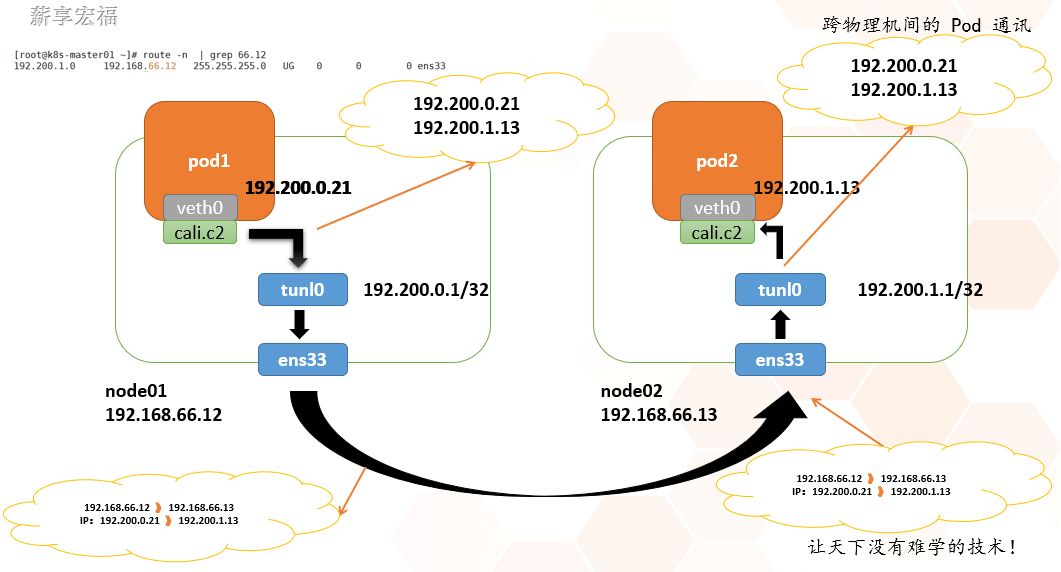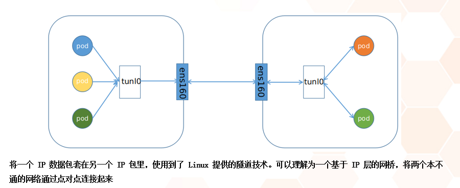 将各个 node 的路由之间做一个 tunnel ,再把网络连接起来