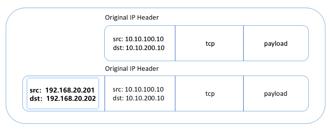 ipv4 的报文上再封装一个 ipv4(三层网络的二次封装)
