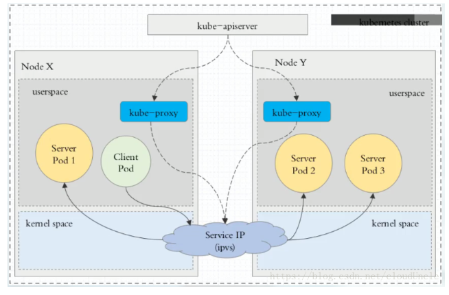 kube-proxy 监听 apiserver 将负载网络变化信息通过 netlinks 接口写入至 ipvs