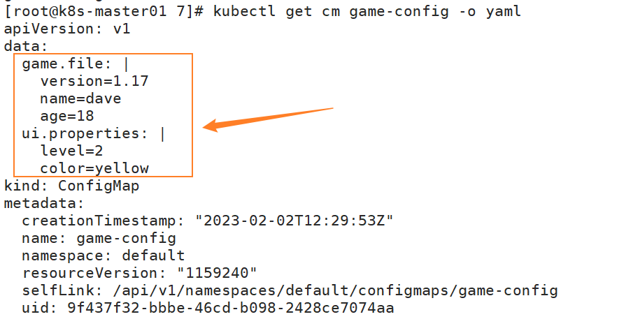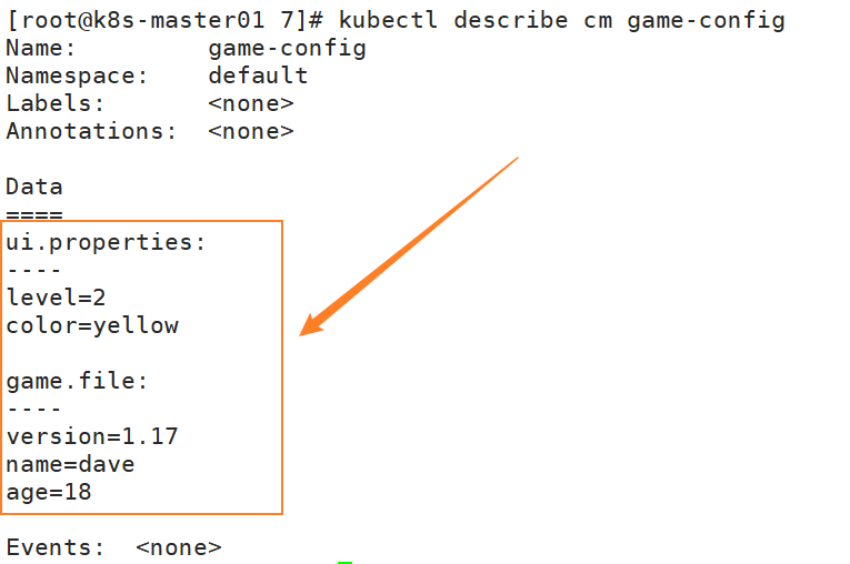 [root@k8s-master01 7]# kubectl create configmap game-config --from-file=/root/7/