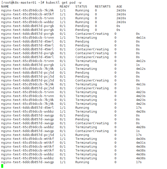 web-0 1/1 Running 0 2s 172.100.1.174 k8s-node01 <none> <none>