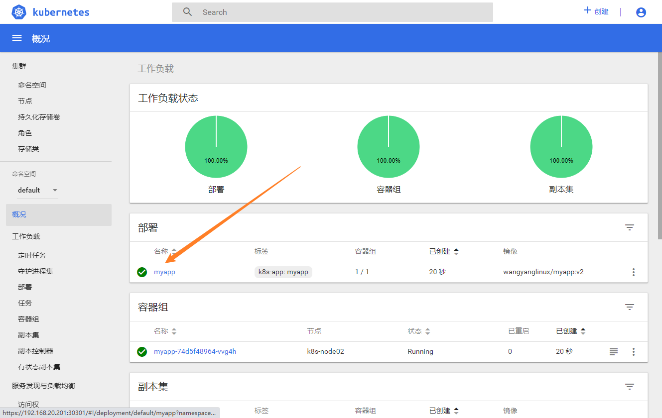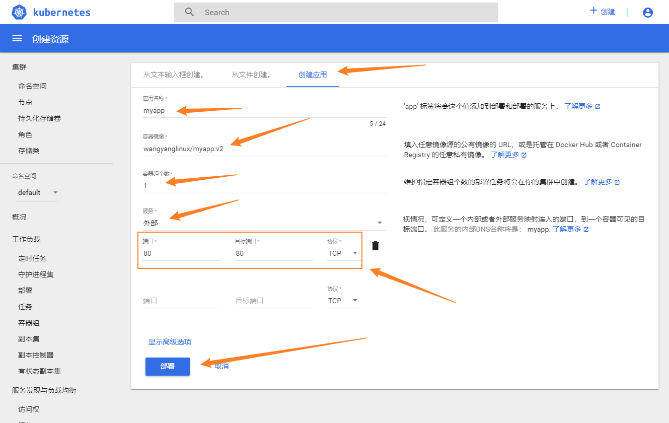 使用 dashboard 部署应用