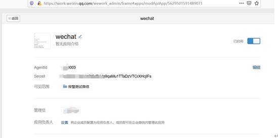 wechat 是自创建应用名称 #在这创建的应用名字是 wechat,那么在配置 route 时,receiver 也应该是Prometheus
