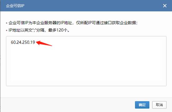 3、将日志中的 IP 信息加入企业微信自建应用的 IP 白名单中