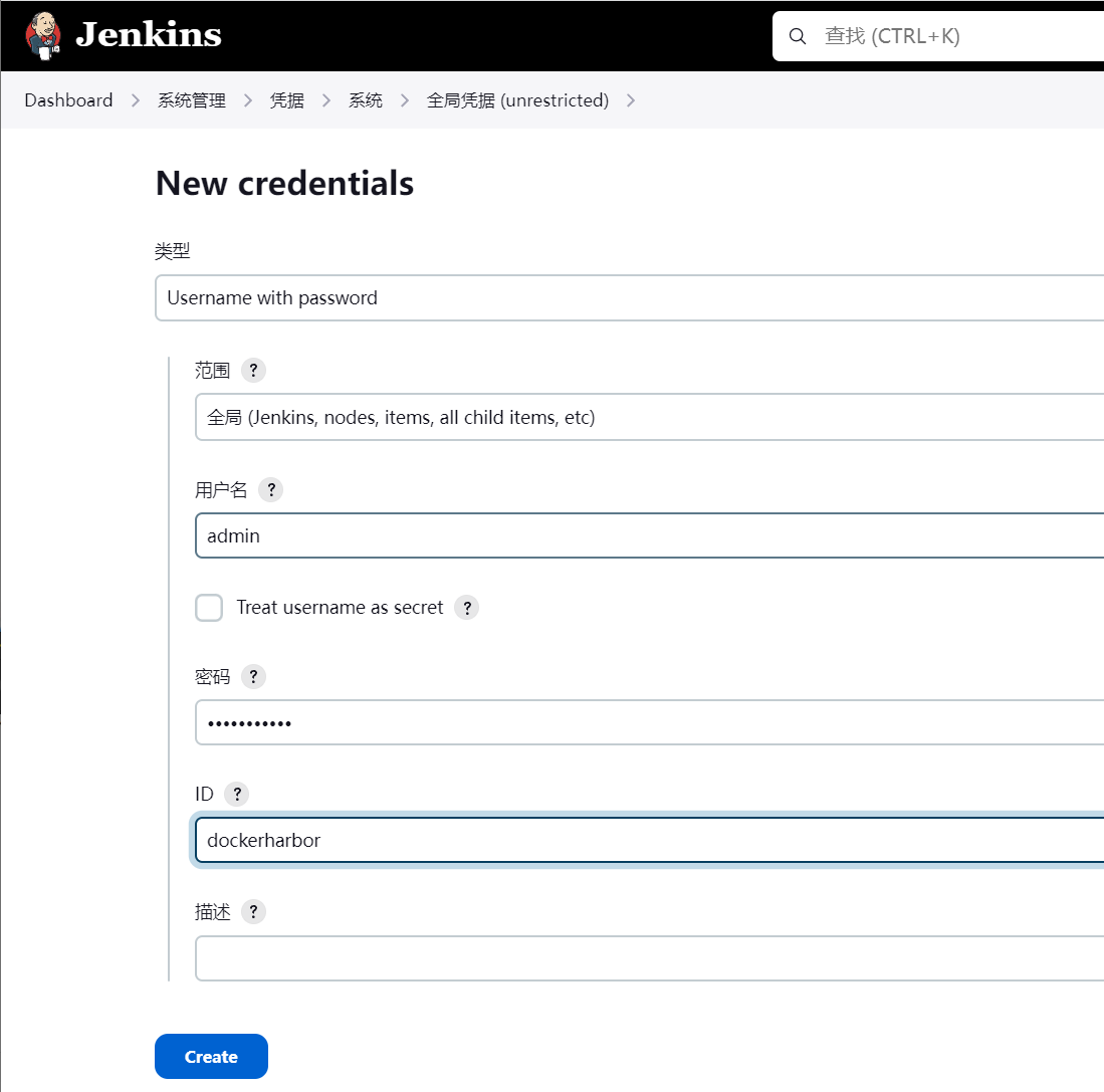 withCredentials([usernamePassword(credentialsId: 'dockerharbor',passwordVariable: 'dockerHubPassword', usernameVariable: 'dockerHubUser')]) {