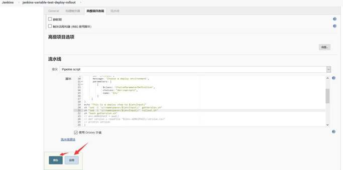 新建一个任务------>输入一个任务名称处输入 jenkins-variable-test-deploy-rollout---- >流水