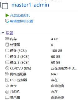 准备三台机器,每台机器需要三个硬盘,配置 2GiB/4vCPU/60G