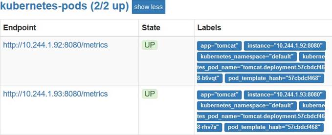 在 promethues 上可以看到监控到 tomcat 的 pod 了